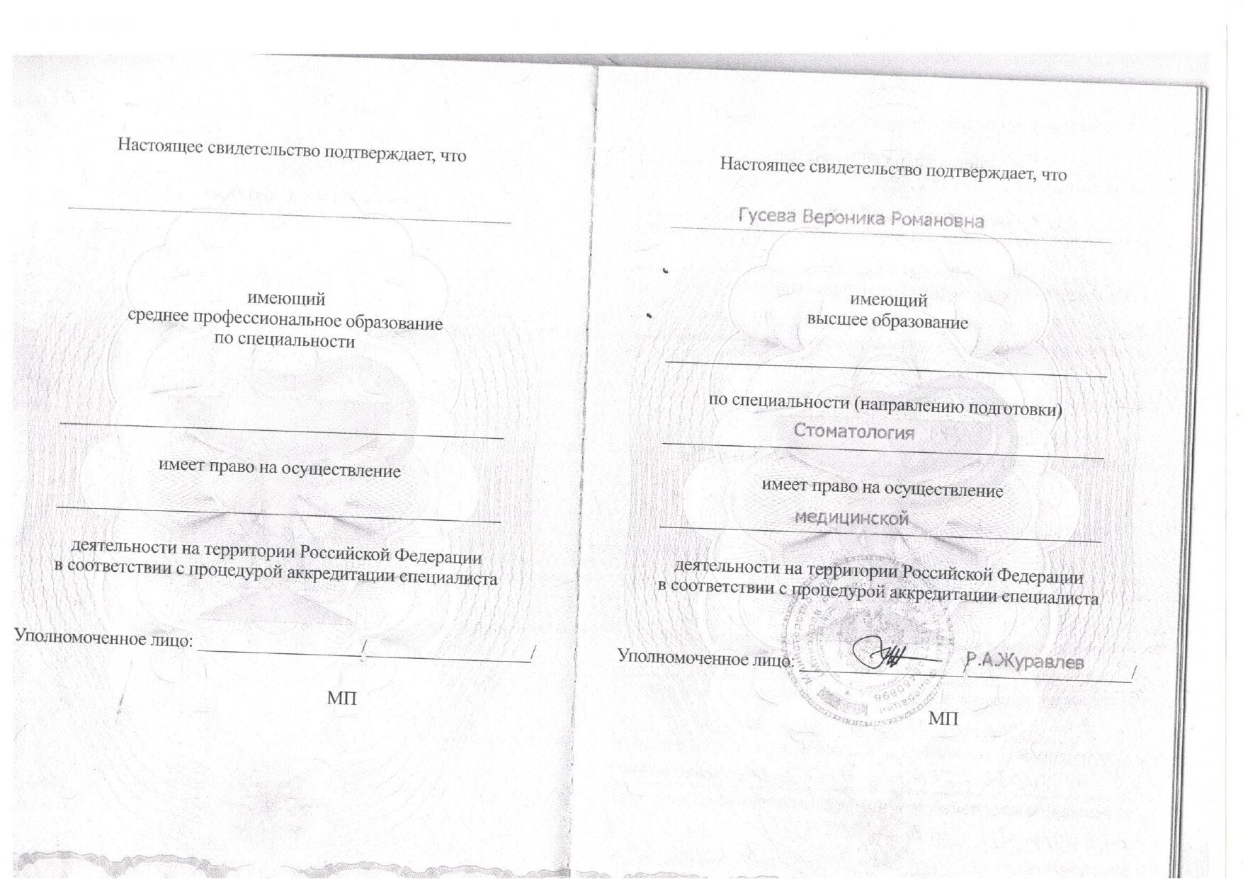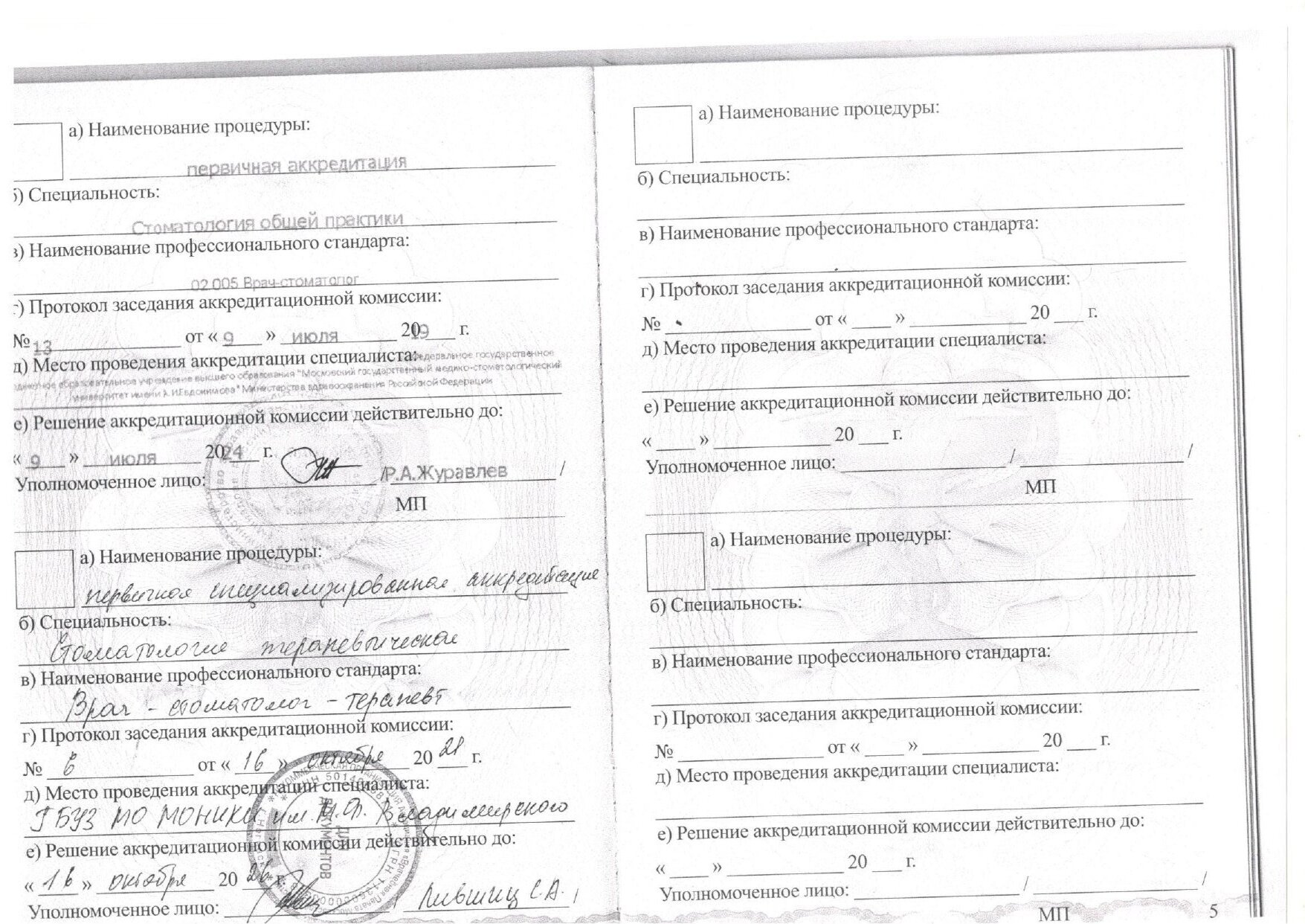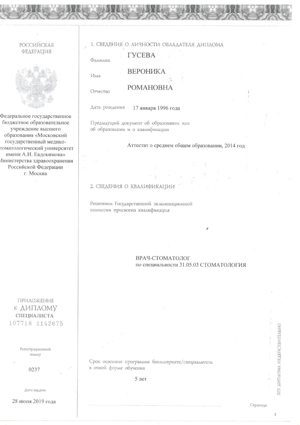2014-2019 гг. – МГМСУ им. А.И.Евдокимова стоматологический факультет.